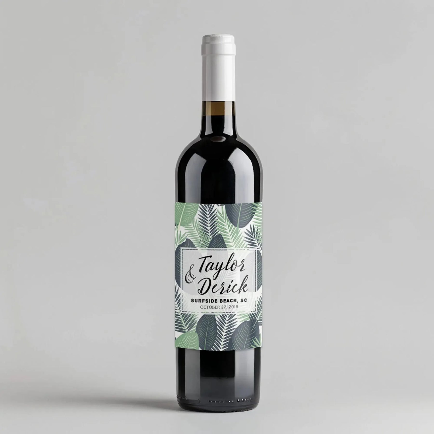 Dress up your wedding wine bottles with our Tropical Leaves Wine Label! Add a touch of paradise to your special day with these unique labels. Cheers to love and good vibes!