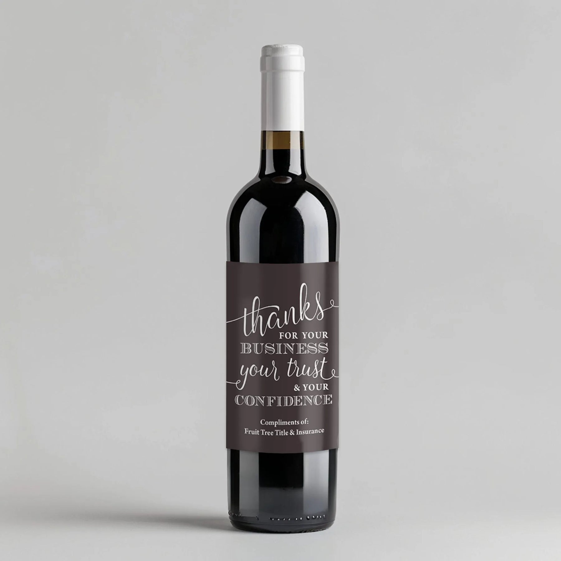 Impress your colleagues with the Trust Confidence Title Wine Label. This unique gift bottle has a witty title in the company name, perfect for any wine connoisseur. It's a playful way to show your trust and confidence in your team. Cheers to a job well done!