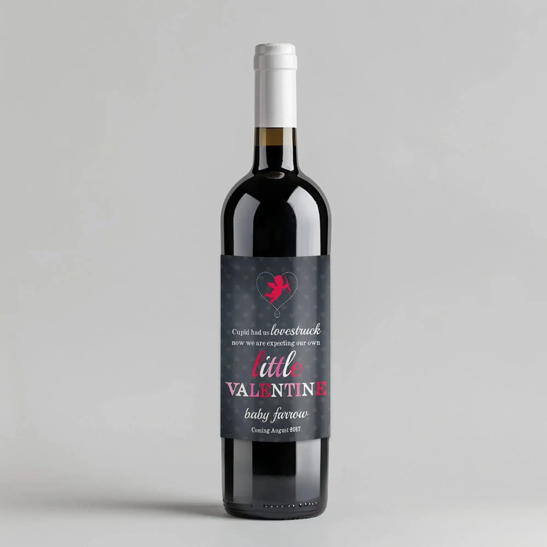 Introducing our Valentine Baby Announcement Wine Label - cupid has struck and now we are expecting! Perfect for sharing your exciting news with loved ones. Cheers to our growing family! (Pun intended)