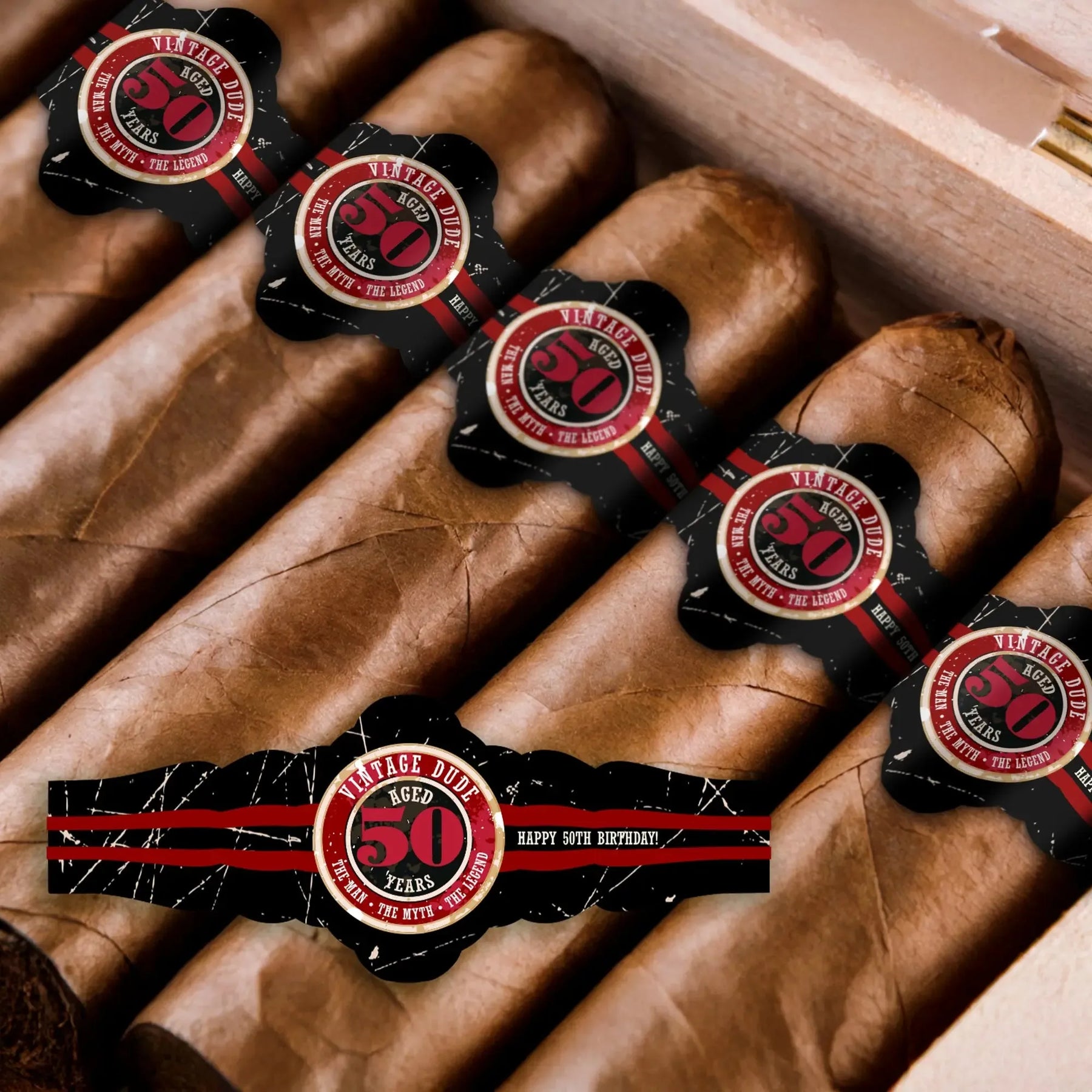 Celebrate half a century with our Vintage Dude 50th Birthday Cigar Bands. These bands feature a stylish vintage design, perfect for marking this special milestone. Made from premium materials, they add a unique touch to your birthday cigars.