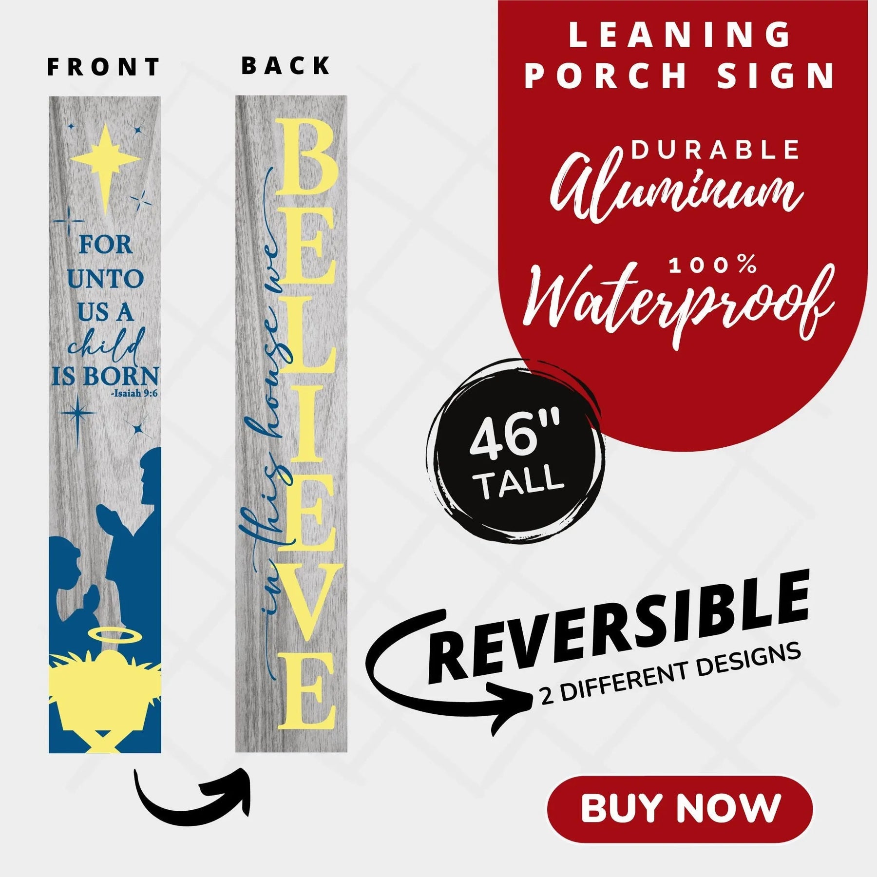 Celebrate the true meaning of Christmas with this charming We Believe leaner porch sign! Printed with a festive and inspiring message, it's sure to bring holiday cheer to your home. Perfect for the season--and beyond!
