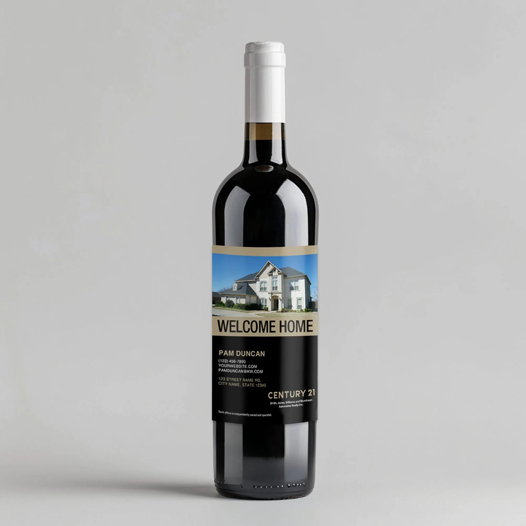 Welcome to your new home! Celebrate with a bottle of wine featuring your own personalized label, complete with a photo of your choice. Cheers to making new memories and breaking in your new space with this unique touch. (Photo must be provided.)