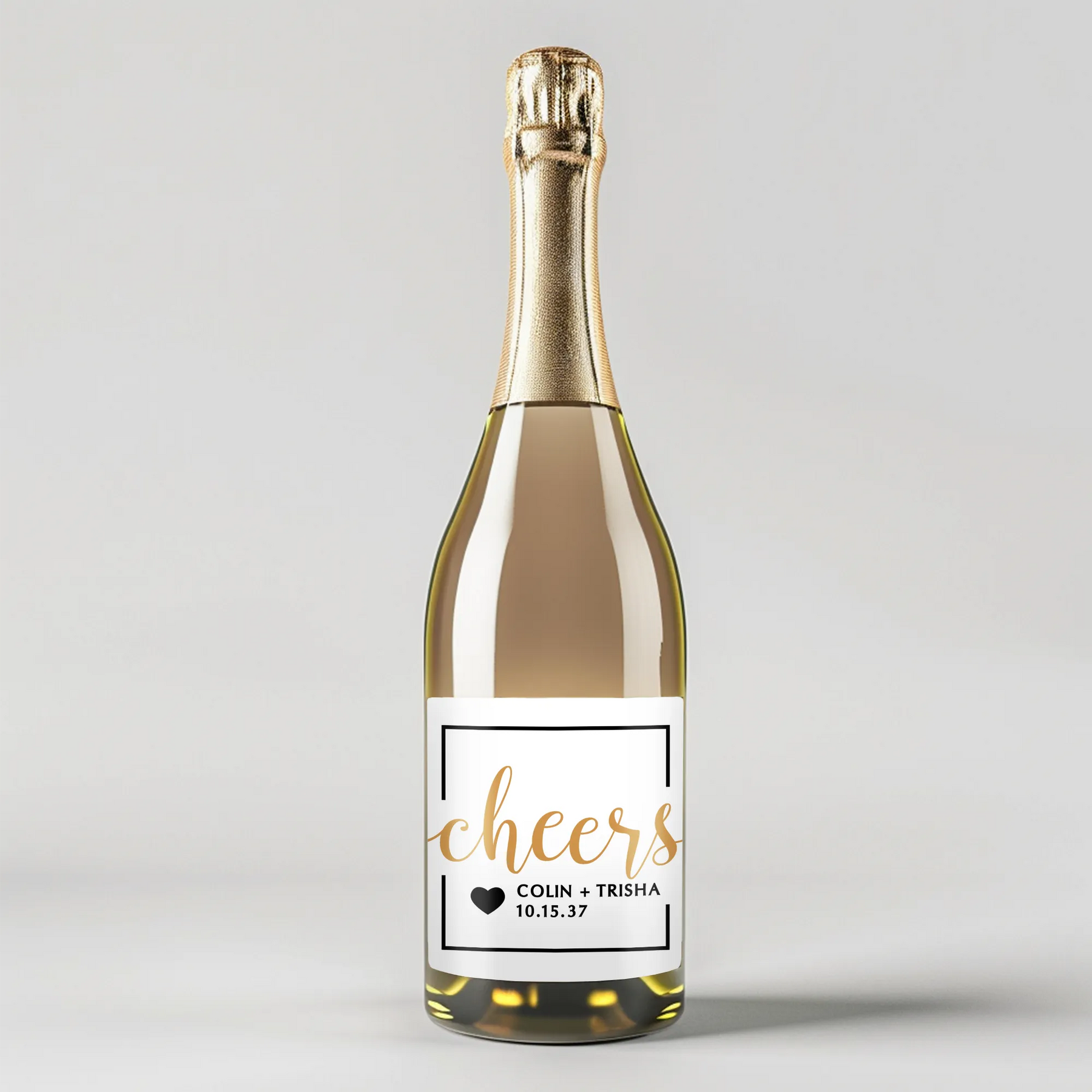 Pop the bubbly with this White Cheers Champagne Label! Add a touch of elegance and personalize your bottle for a special occasion. Cheers to a vibrant and celebratory pop of personality!
